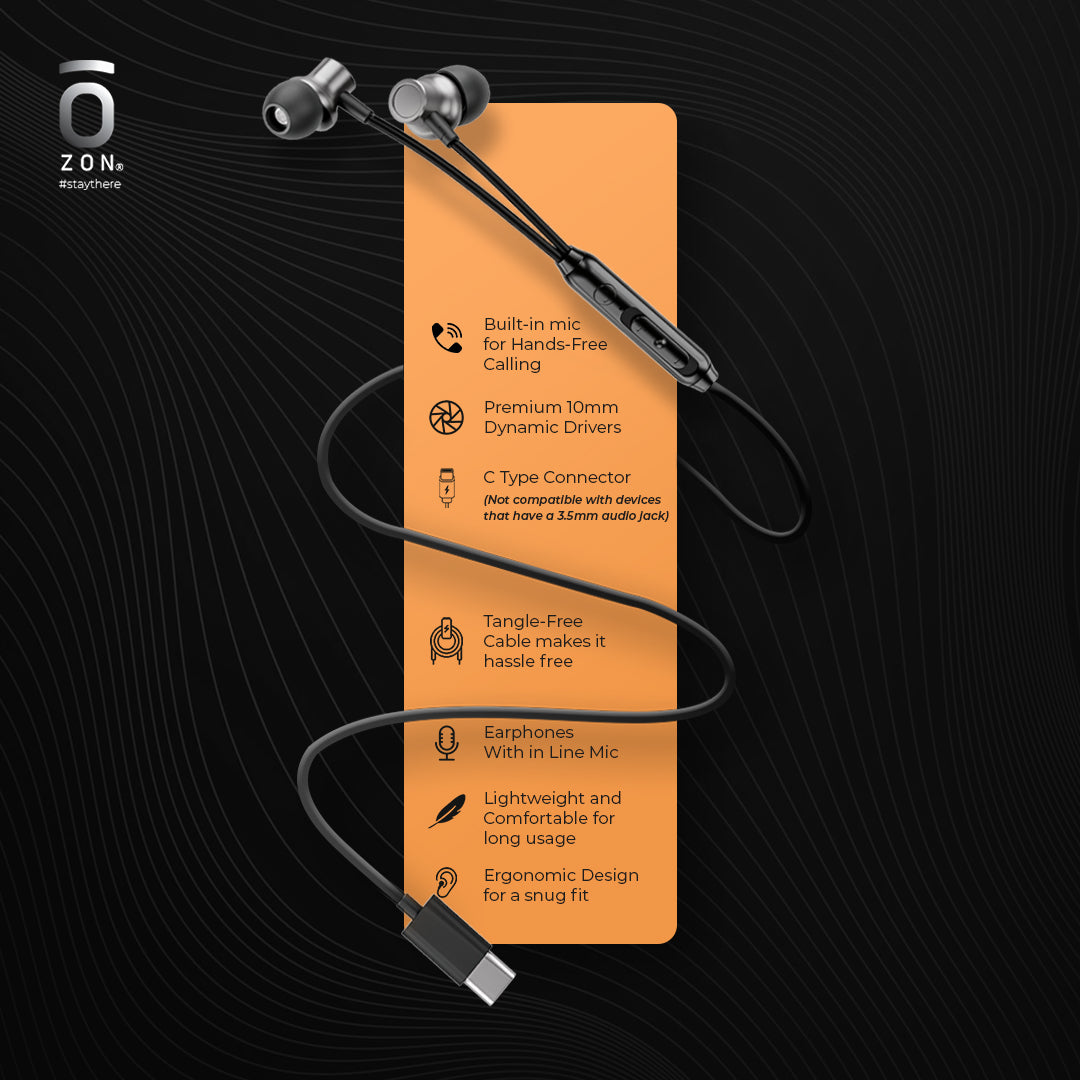 The Soft-feel tangle-free cable is durable and highly resistant which makes it long lasting and stress-free. Plug into convenience with the C-type connector to begin your journey and remain ZONed in, as you want.
